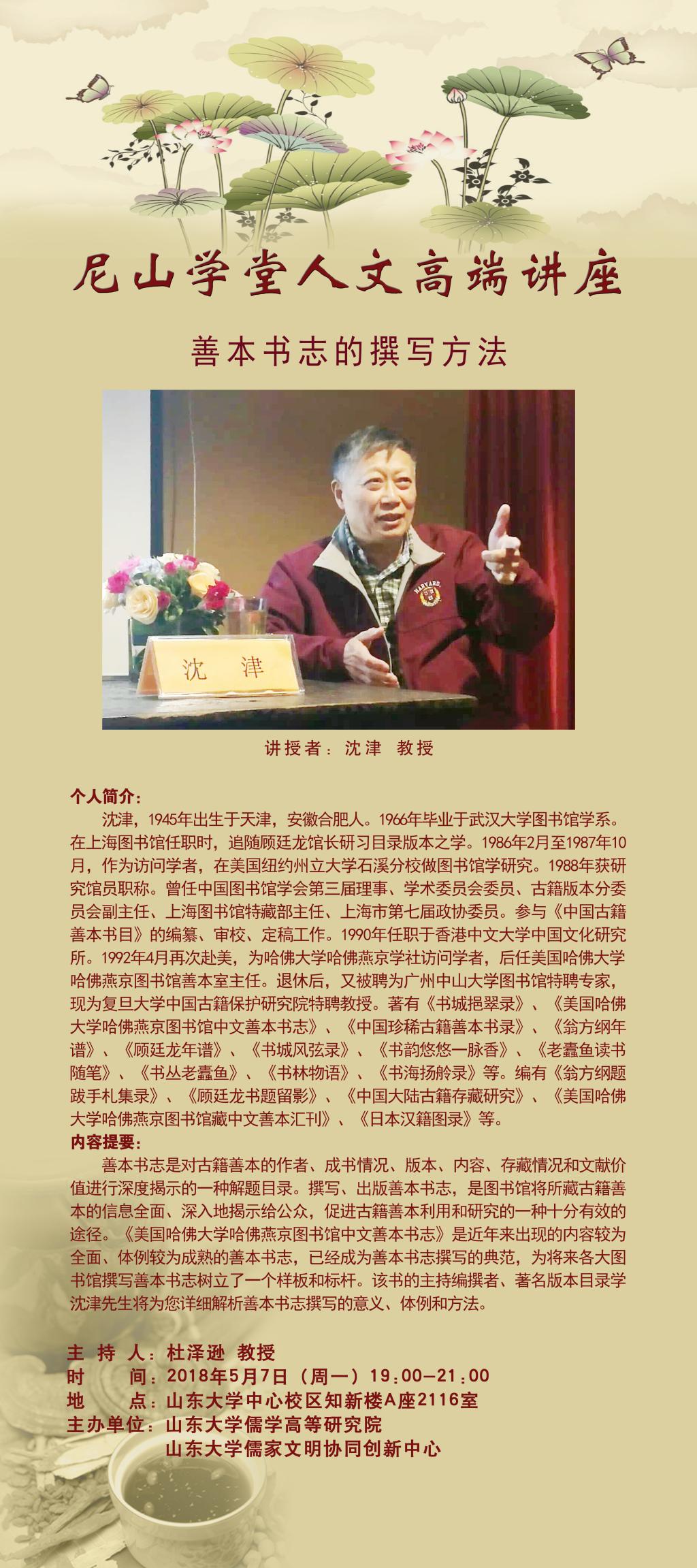 学术预告:尼山学堂人文高端讲座“善本书志的撰写方法”