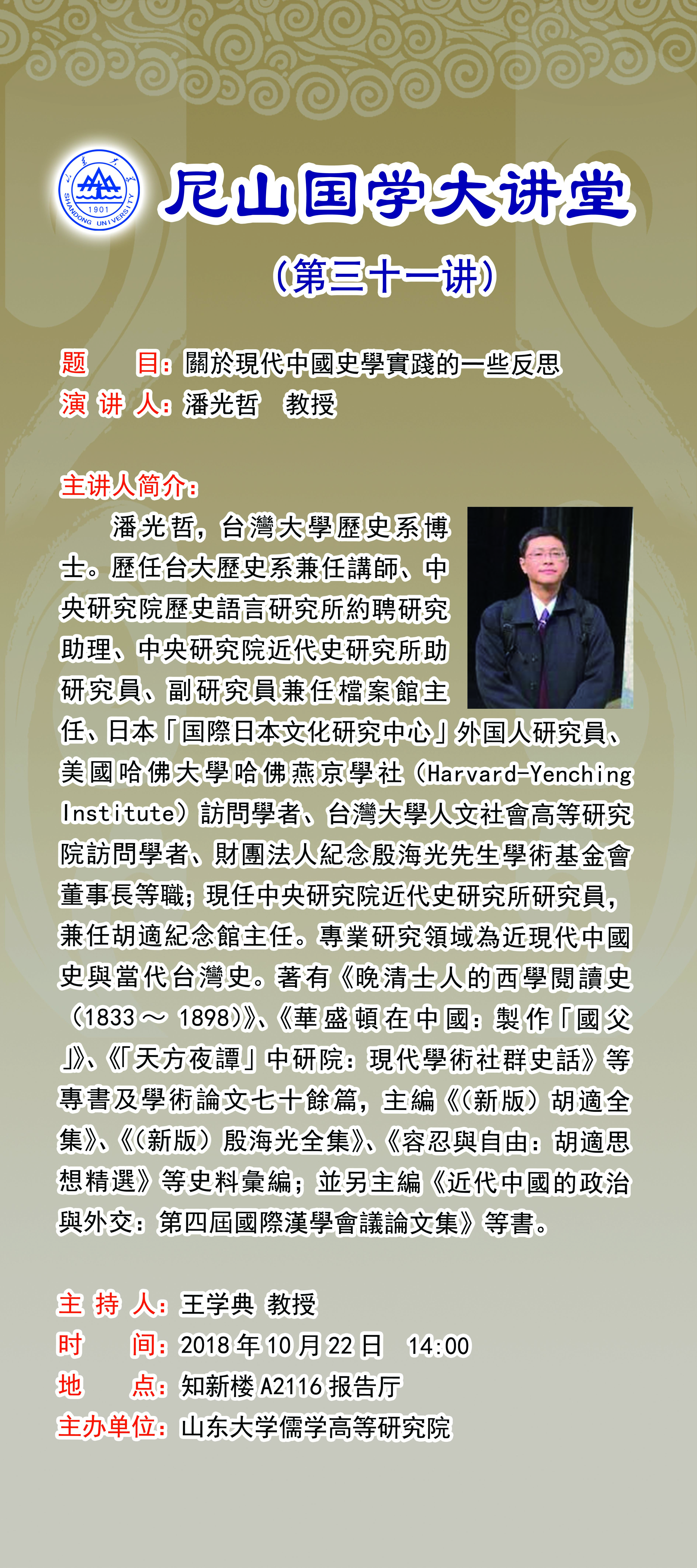 学术预告:尼山国学大讲堂第三十一讲