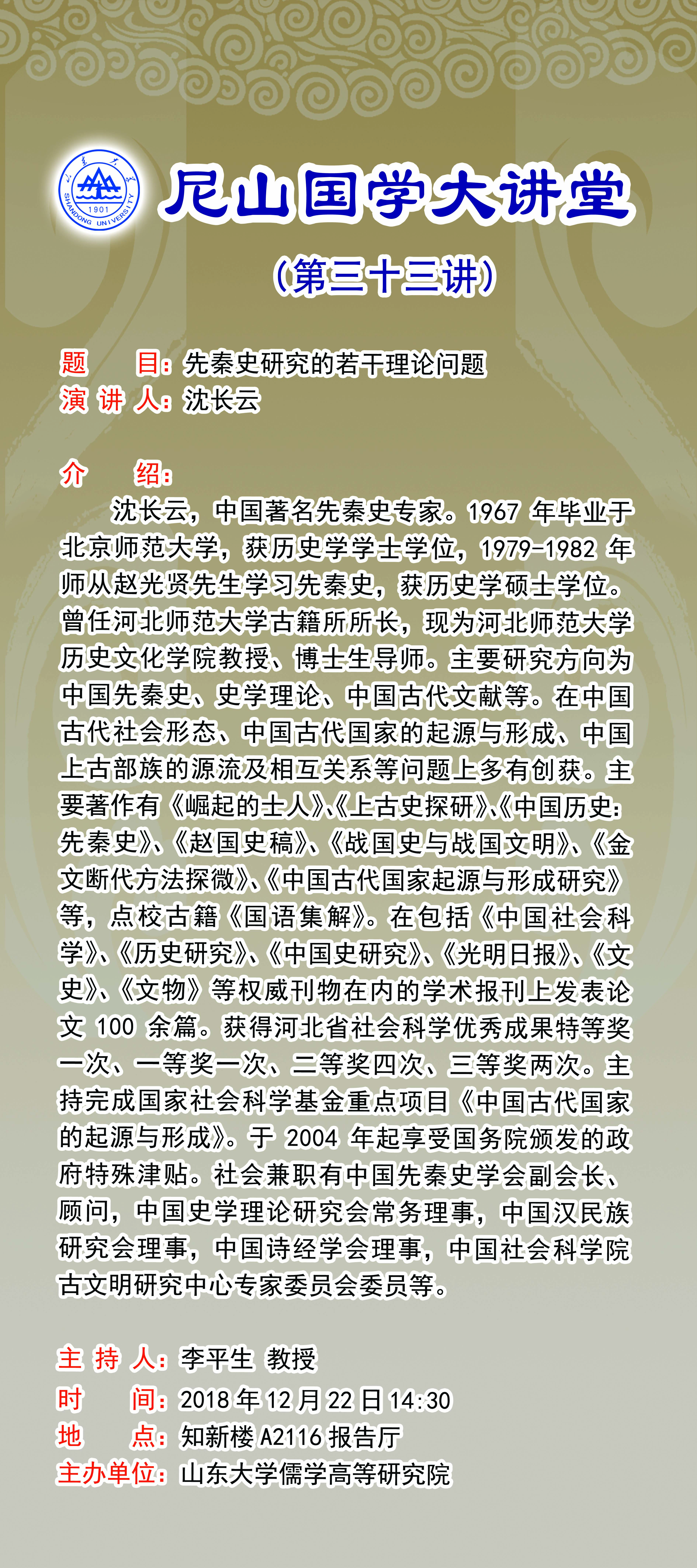 学术预告:尼山国学大讲堂第三十三讲