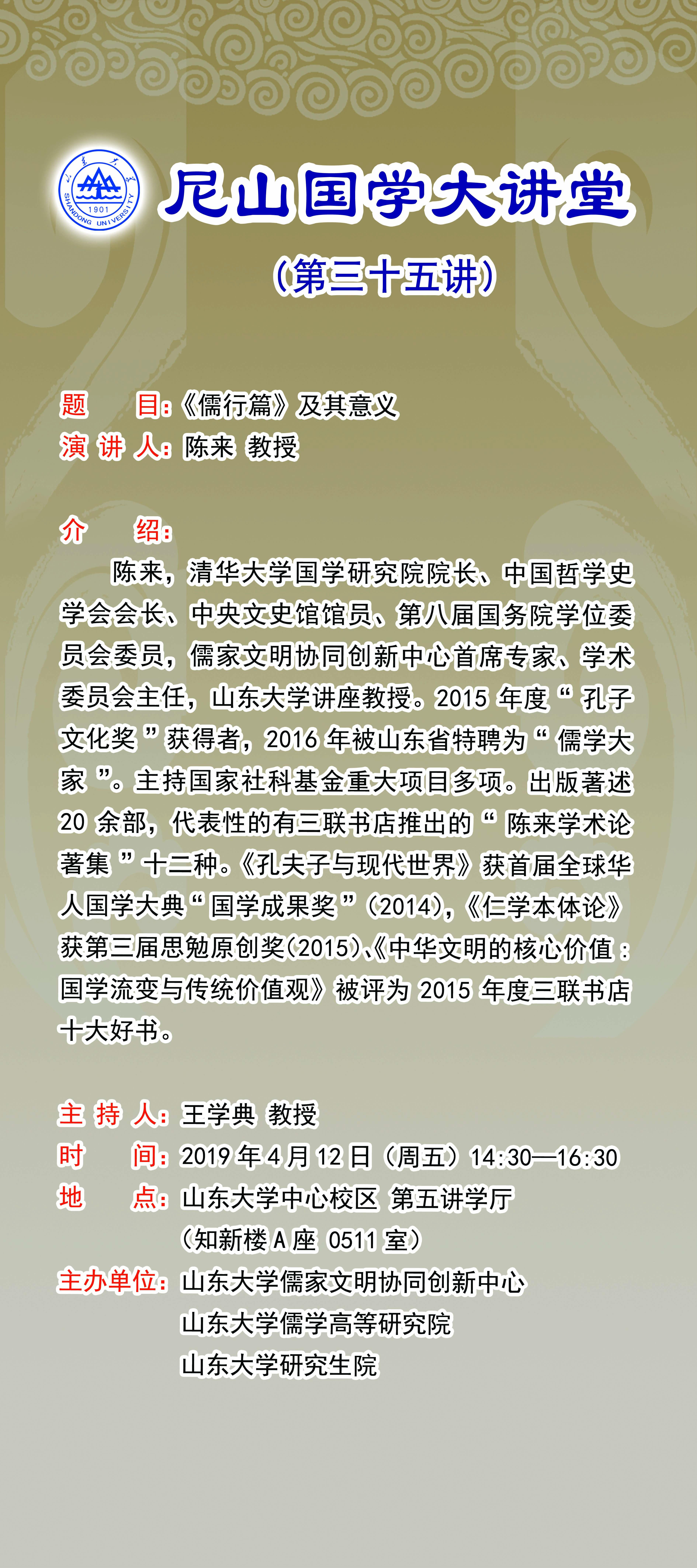 学术预告:尼山国学大讲堂第三十五讲