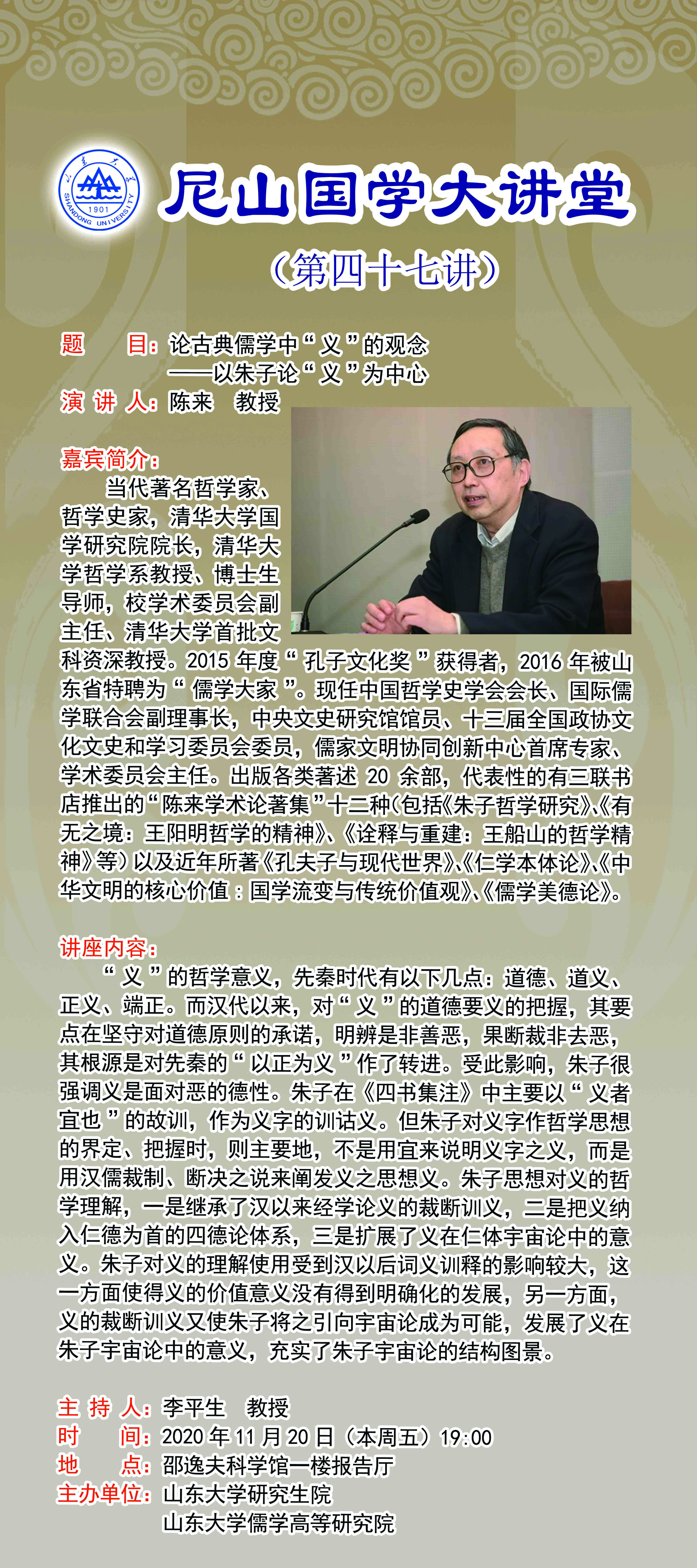 学术预告:尼山国学大讲堂第四十七讲