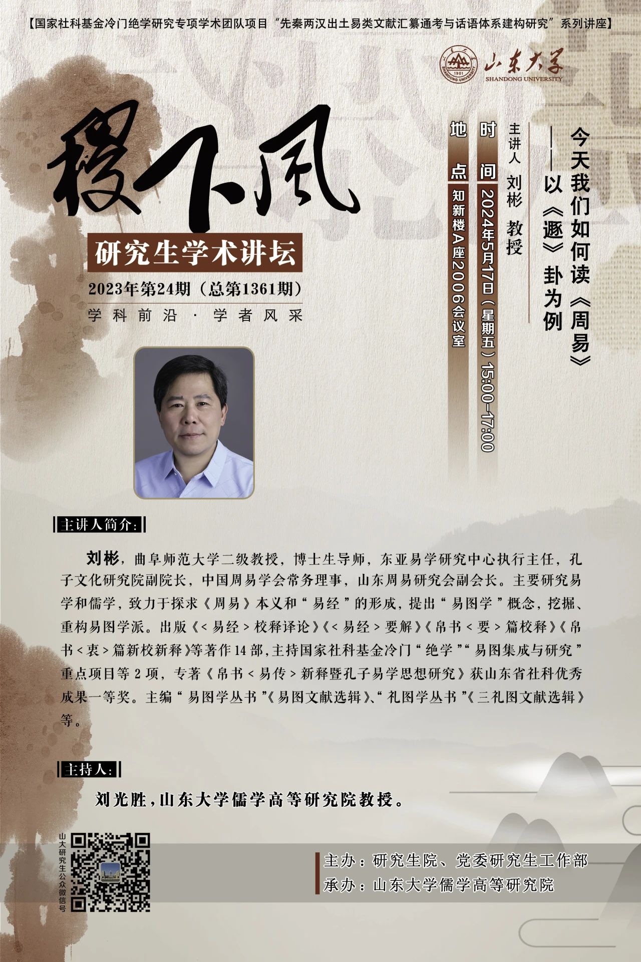 “稷下风”讲坛预告 | 刘彬:今天我们如何读《周易》——以《遯》卦为例