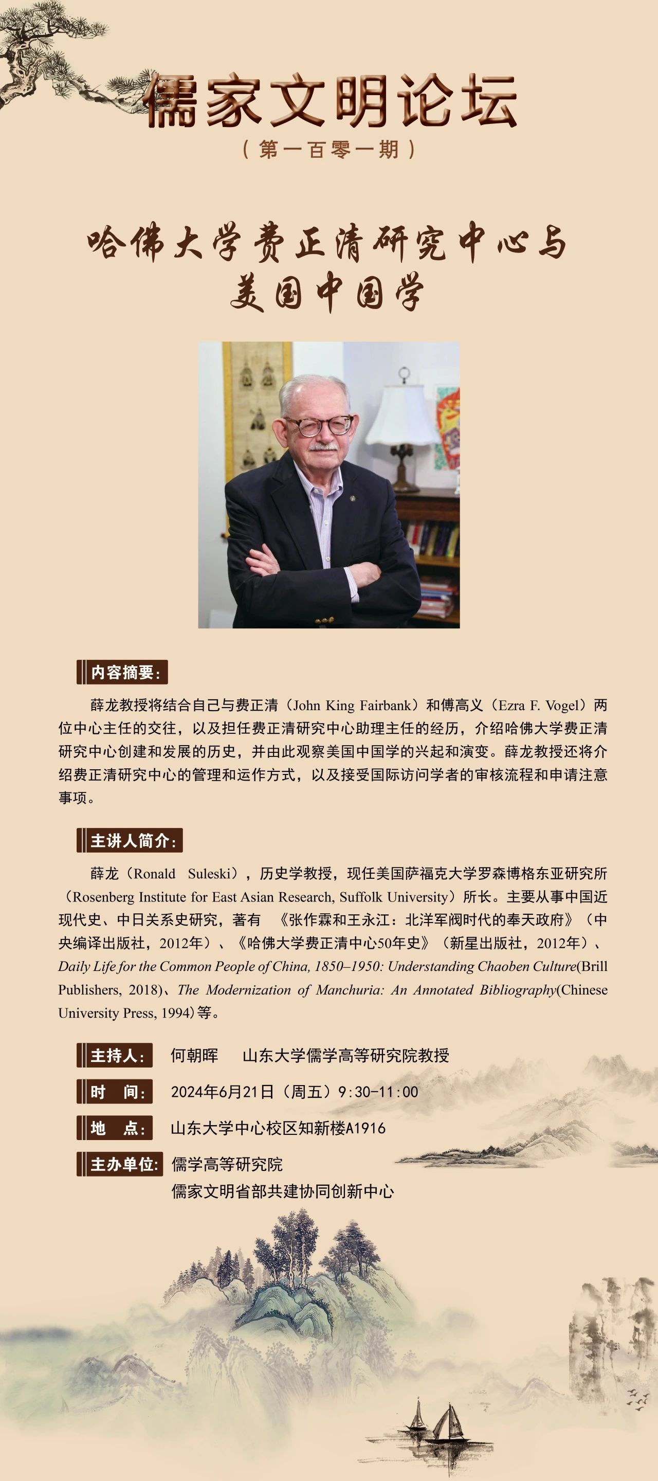 讲座预告 | 儒家文明论坛第一百零一期:哈佛大学费正清研究中心与美国中国学