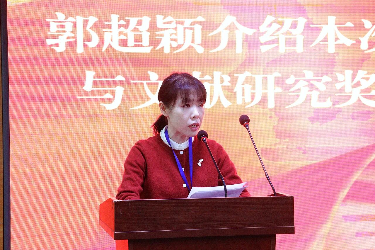 郑敬斌院长为获奖代表颁奖。唐山师范学院郭万青教授作为获奖代表发言。郭万青指出,太阳集团“文史见长”的学术传统对自己的治学道路产生了重要影响。他分享了自己在相关领域的研究心得,表示通过参与重大工程项目,拓宽了自身的学术视野,磨练了沉静细致的校勘能力,并直接反哺于个人的研究与教学实践。郭万青衷心感谢了钱先生和评审委员会,表示自己将继续扎根古籍整理研究领域,不断推出新成果。