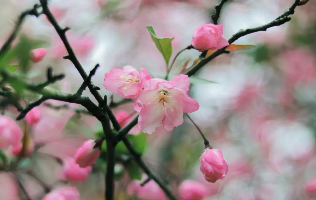 楼前绽放的海棠尽态极妍