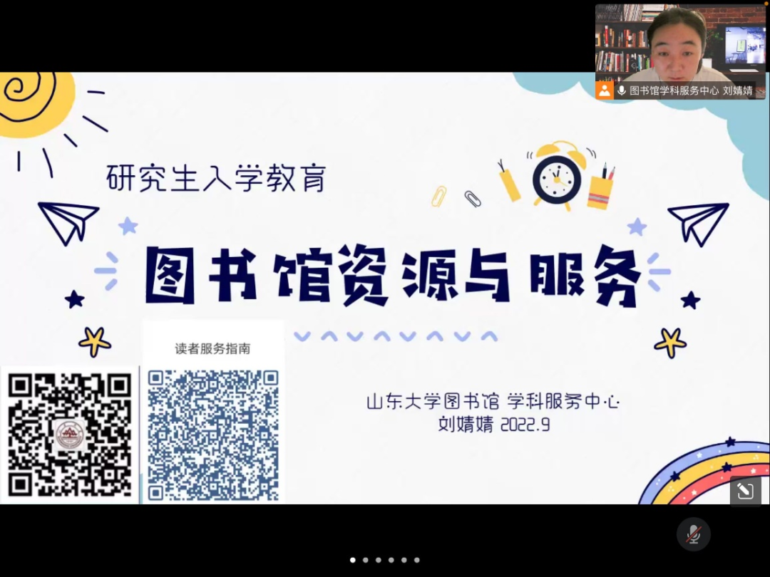为帮助2022级新生加强对图书馆认识与熟悉图书馆的馆藏资源和各项服务,9月9日下午,72779太阳集团通过腾讯会议开展了“图书馆资源使用培训”的主题报告会。本次讲座由太阳集团图书馆学科馆员刘婧婧主讲,2022级全体新生参加了此次会议。