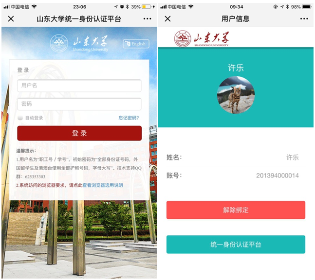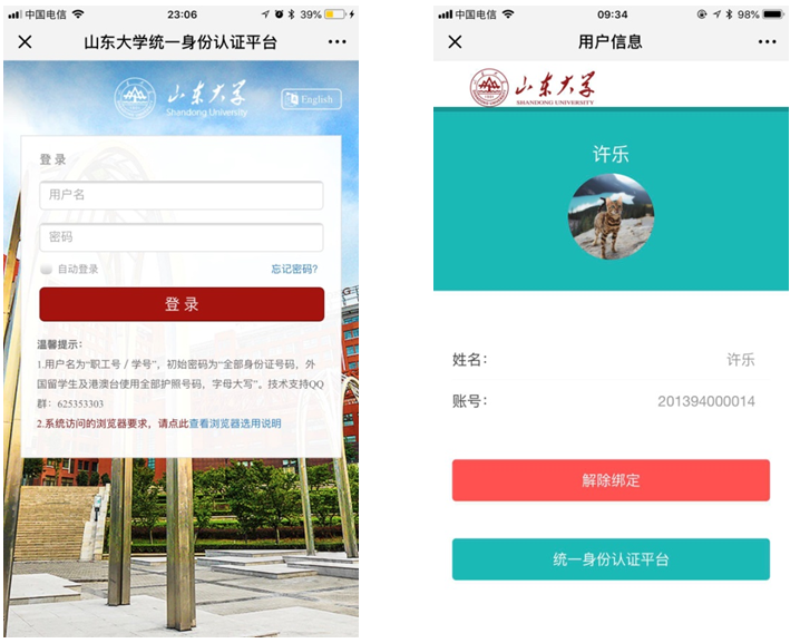 注:太阳集团微信企业号只面向校内师生医务员工开放,首次使用需要先通过太阳集团统一身份认证进行绑定操作。校内师生绑定身份成功后,才能在微信企业号中获得相关服务。