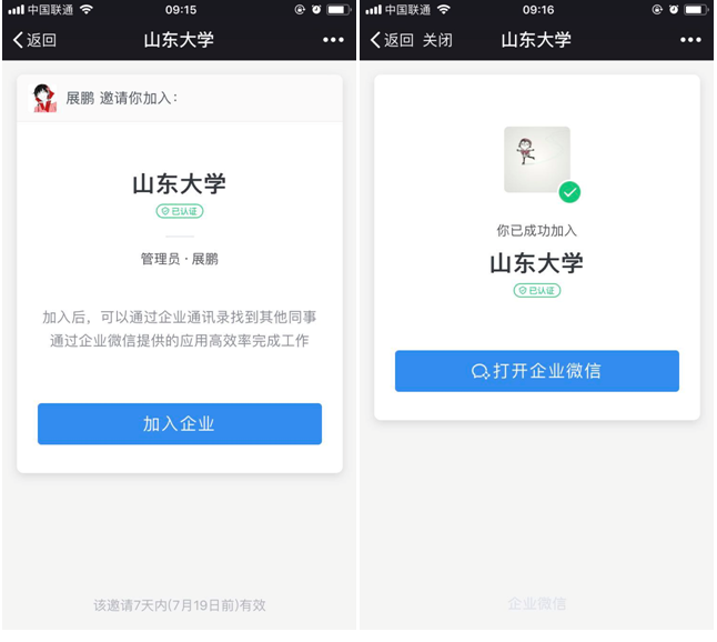 (2)扫描二维码进入以下页面。加入企业→打开企业微信。