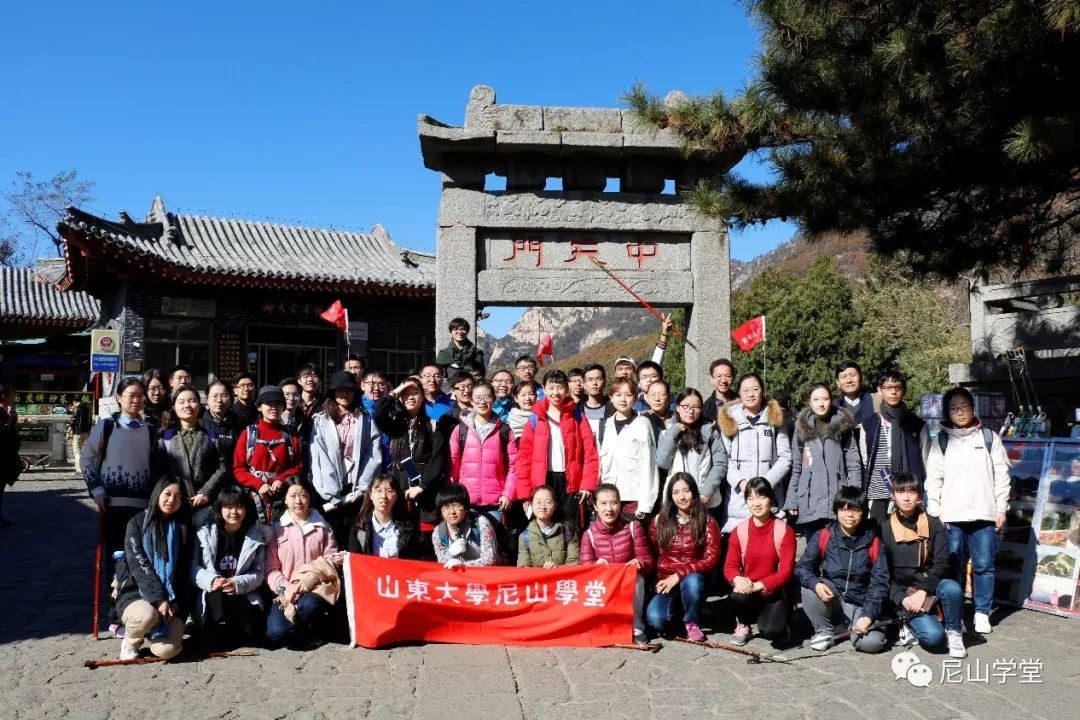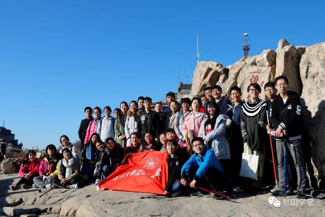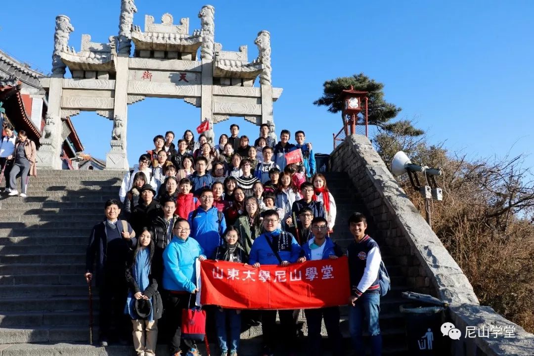 10月28日尼山学堂诸学子在老师的带领下共攀泰山,途经中天门、南天门、碧霞祠、日观峰、瞻鲁台等景观,沿途欣赏摩崖刻石上名家名人的题咏诗赋。