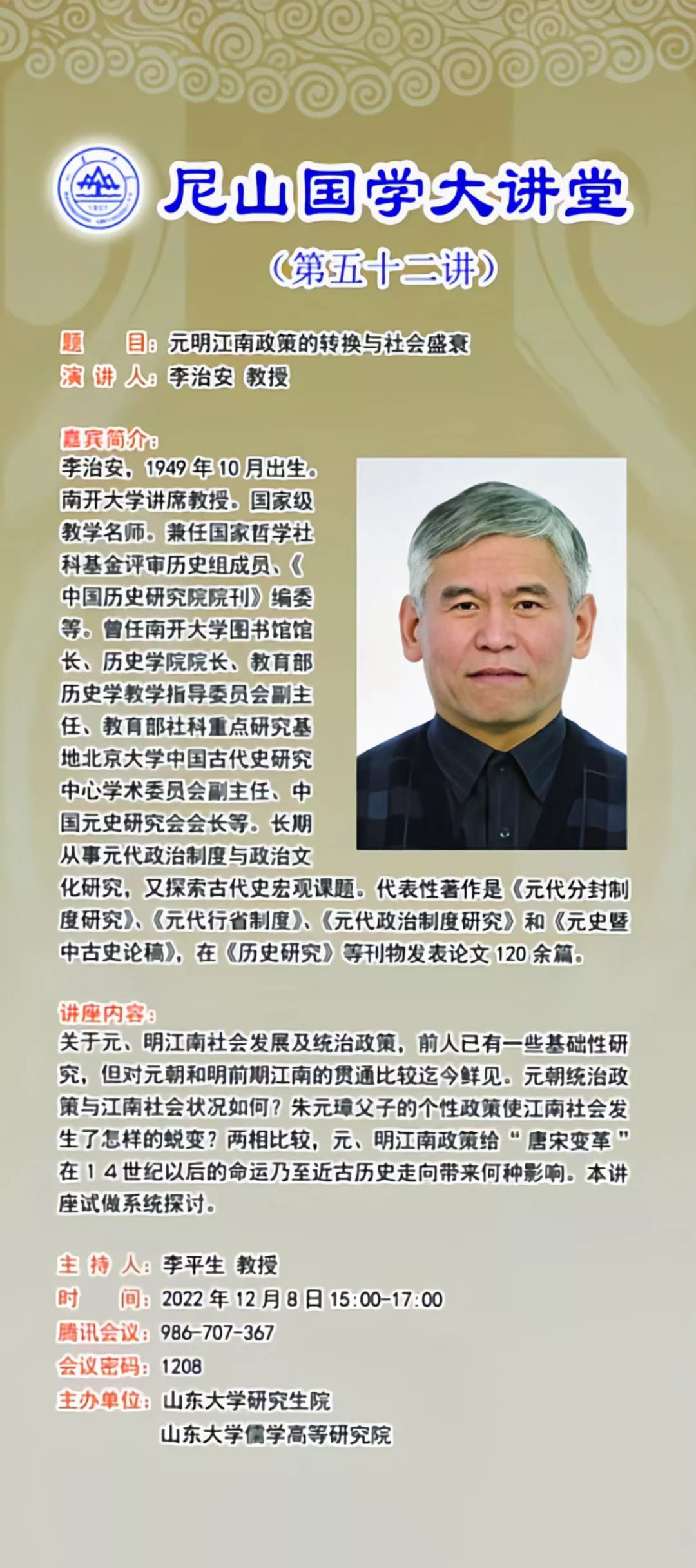 学术预告:尼山国学大讲堂第五十二讲