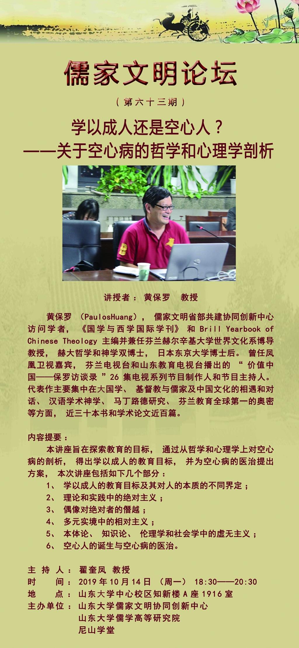 学术预告:儒家文明论坛第六十三期