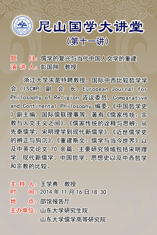 尼山国学大讲堂预告:儒学的复兴与当代中国人文学的重建