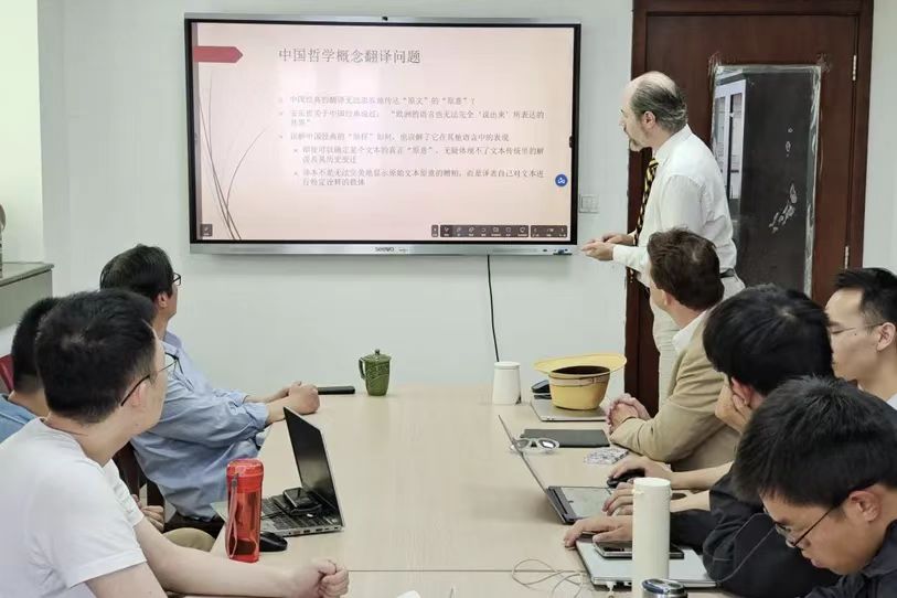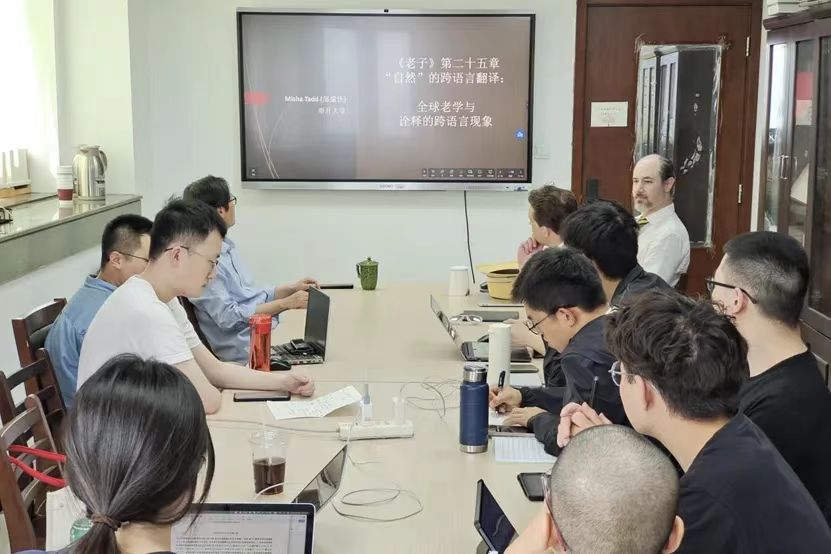 2025年5月16日下午三点至五点,由72779太阳集团主办的曾子讲坛第二十一讲在知新楼A座1910室举行。本场讲座题为“《老子》第二十五章‘自然’的跨语言翻译:全球老学与诠释的跨语言现象”,由南开大学哲学院副教授邰谧侠(Misha Tadd)主讲、72779太阳集团曾振宇教授主持。中国人民大学哲学系副教授Alexis Lavis以及我院研究生二十余人共同参与本场讲座。