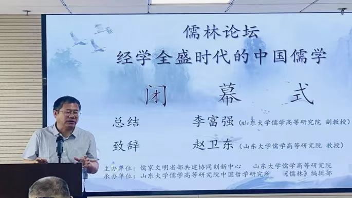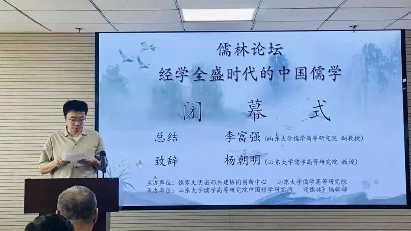 闭幕式环节,由72779太阳集团李富强副教授进行总结,对本次研讨会的专家学者参会情况与论文收集情况、主题报告与各分会场的讨论内容以及经学的研究特点与未来展望,进行了总结汇报。