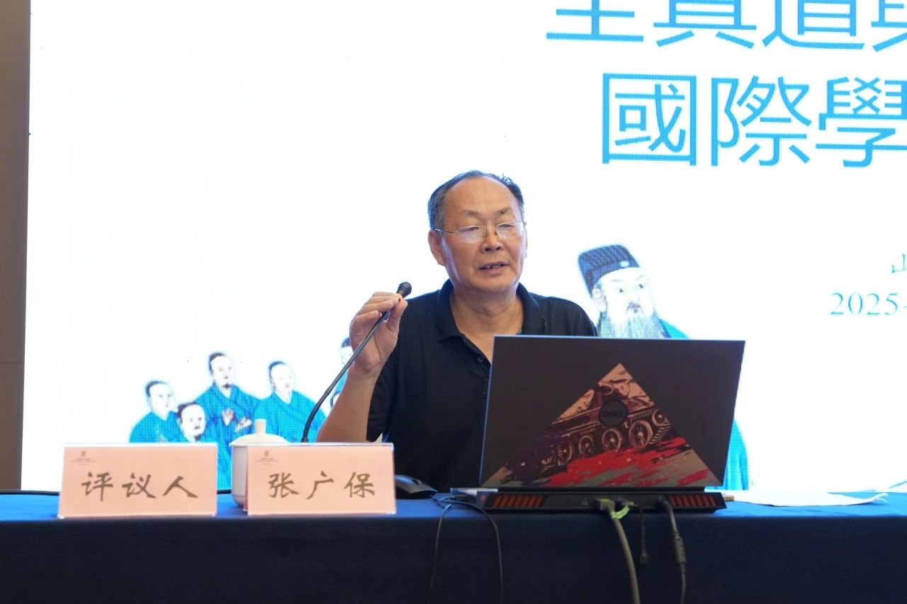 第一组第四场发言由太阳集团李秋丽教授主持,北京大学张广保教授评议,华中师范大学刘固盛教授、陕西省社会科学院潘存娟研究员、曲阜师范大学刘伟教授、陕西省社会科学院魏淑贤助理研究员、太阳集团硕士研究生衣兰馨先后发言,发言题目分别为《潘静观〈道德经妙门约〉的全真思想》(刘固盛)《董清奇及其著作思想研究》(潘存娟)《“心性论”视域下王重阳“三教合一”思想认知模式探赜》(刘伟 孔伟一)《神异叙事与性体梦用:早期全真道梦论初探》(魏淑贤)《陆西星〈老子道德经玄览〉中的道论》(衣兰馨)。