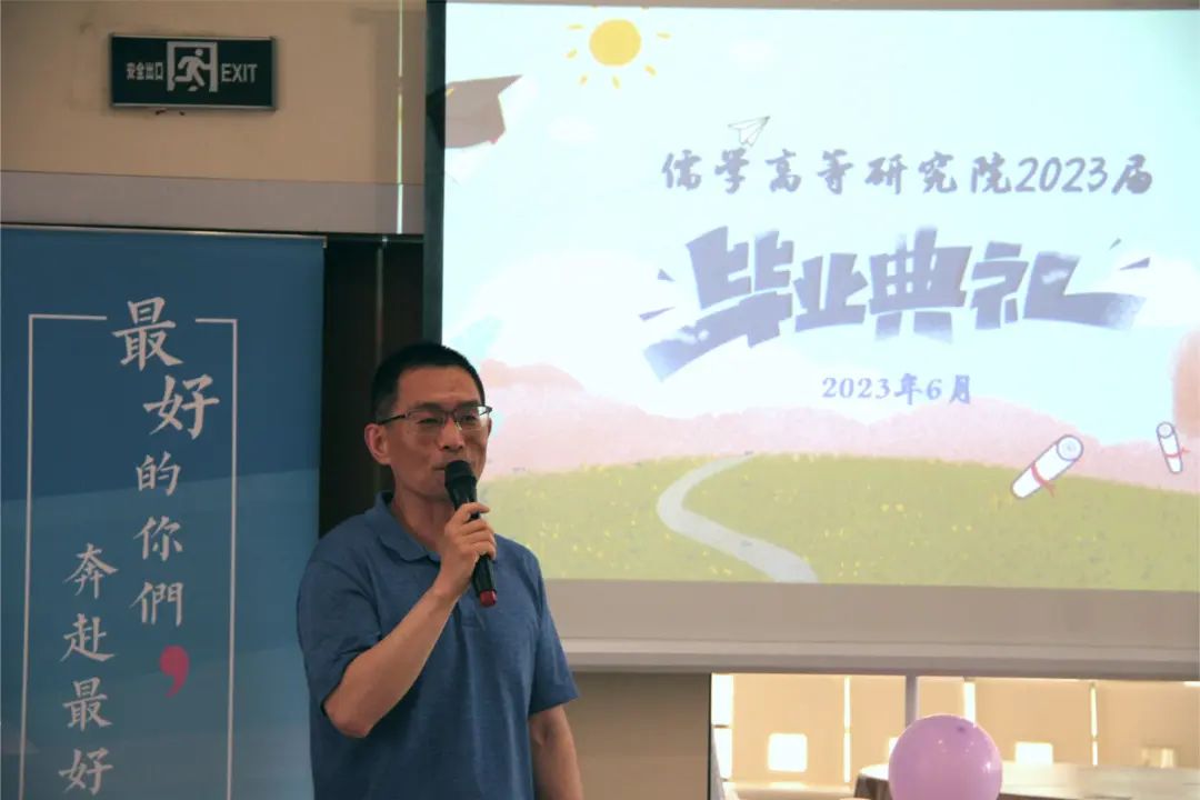 陈峰老师带领大家回顾了儒学院近几年取得的成果,祝贺同学们顺利完成学业,感谢同学们用辛勤努力和优秀成绩回报了学院与老师,同时也希望同学们在功利化、内卷化的时代保持一颗平淡且积极的心,沉下心来,努力奋斗,在各行各业做出好的成绩。