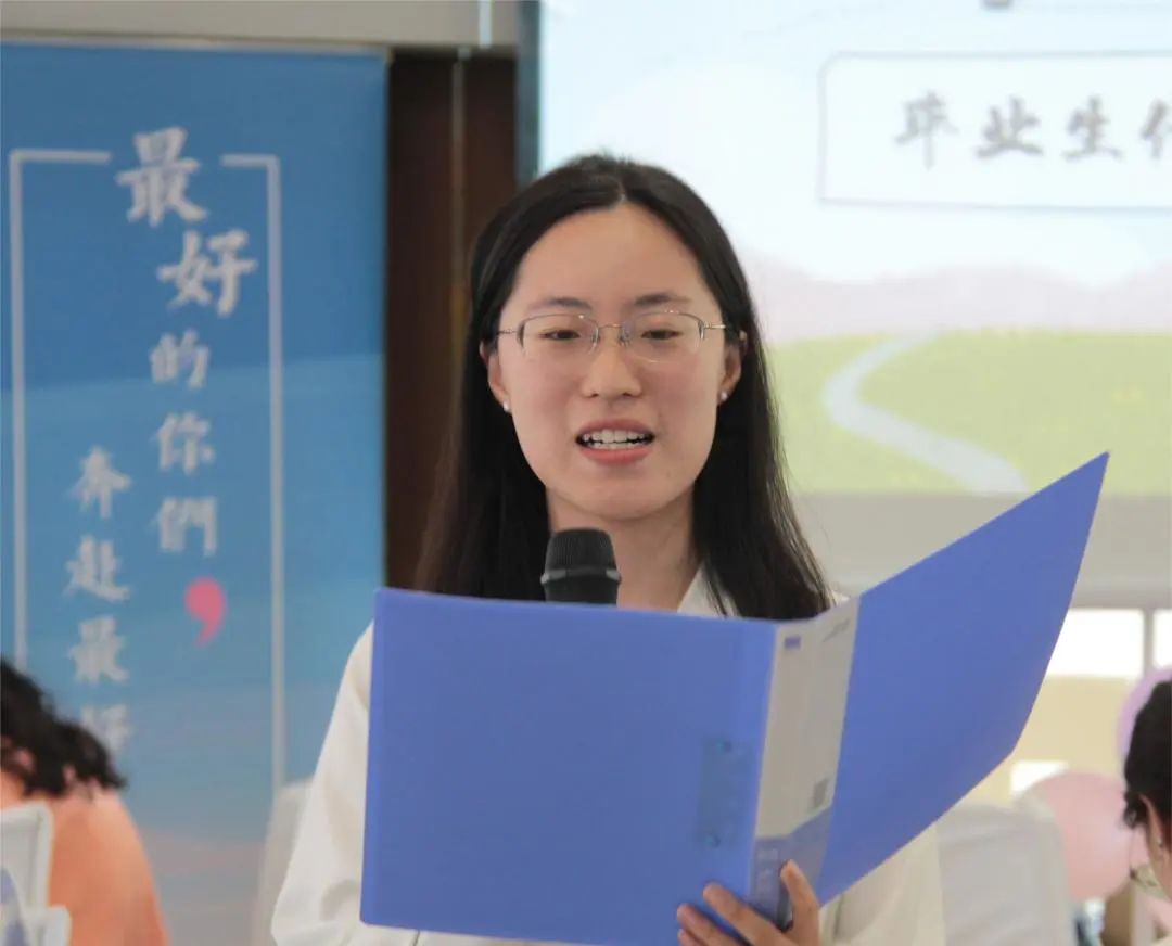 在校生代表王娇祝愿毕业生能带着“包藏宇宙之机,吞吐天地之志”的远大志向,“纵有狂风拔地起,我亦乘风破万里”的坚毅果敢,“莫愁千里路,自有到来风”的乐观洒脱,一路高歌,一路前行,无论今后面对怎样的艰难,都能“依然一笑作春温”。