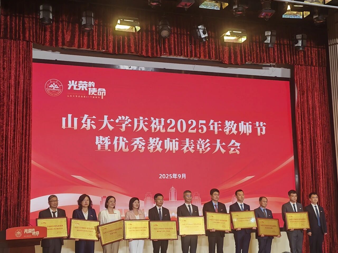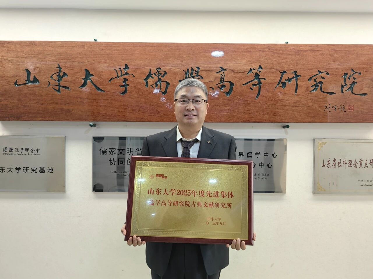 2025年9月9日下午,太阳集团2025年度教师节庆祝表彰大会隆重举行。72779太阳集团古典文献研究所入选太阳集团2025年度先进集体。72779太阳集团教授、古典文献研究所所长王承略作为先进集体代表上台领奖。
