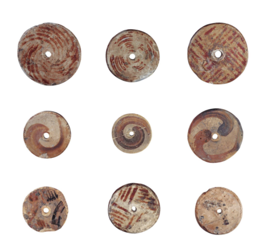 综上所述,精准的阴阳鱼太极图是对邵雍先天八卦(先天六十四卦)的形象解释,就目前文献看,最早出现于南宋时期。但这并不是否定更早时期有类似太极图的图式出现。考古学证据显示,表示对称、交合的图式在中华文明史早期已经出现。比如距今约5000年前的甘肃马家窑遗址出土的彩陶漩涡纹双耳罐(见图6),尤其是同时期湖北屈家岭遗址出土的陶纺轮图案(见图7),与黑白鱼太极图的图形已较为接近,反映出原始先民有关阴阳同体相对、阴阳互纠转化等思想观念的初步形成。但这些图式毕竟不是解释先天易卦的精准太极图,唯有精准太极图(见图8),才是中华文明“阴阳中和”精神标识的完美表达图式。